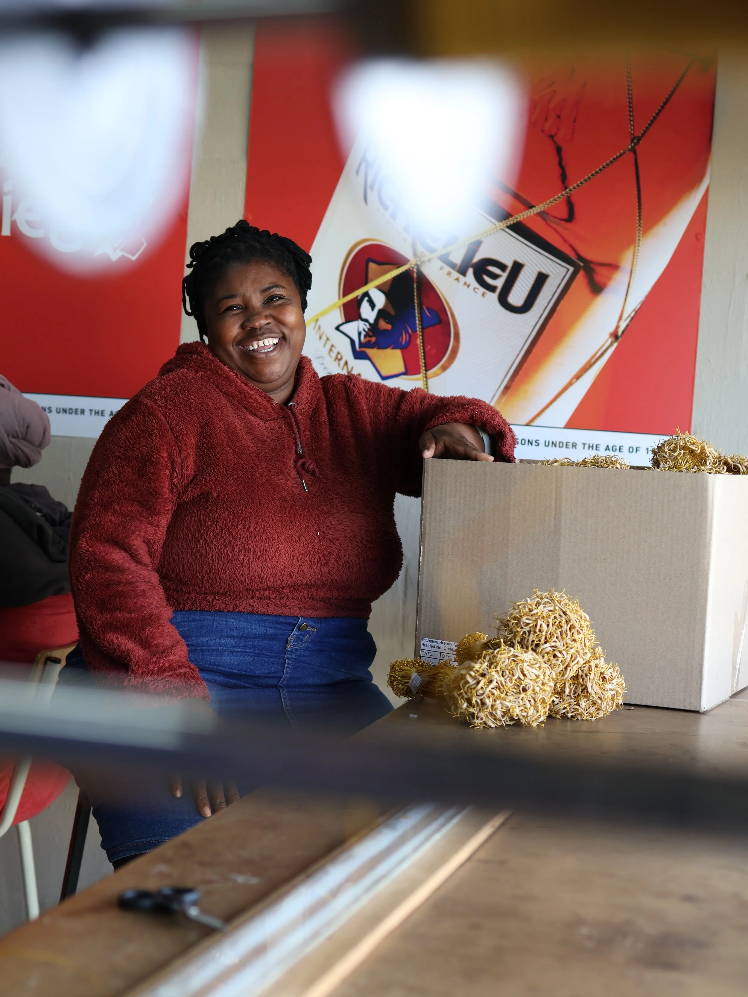 Every member of the Richelieu team produces over 100 nets a day. Supervisor, Zodwa Matyobeni trains four women at a time, getting them production-ready in just two weeks. She believes true productivity comes from recognising each woman’s strengths and placing her where she’ll excel.