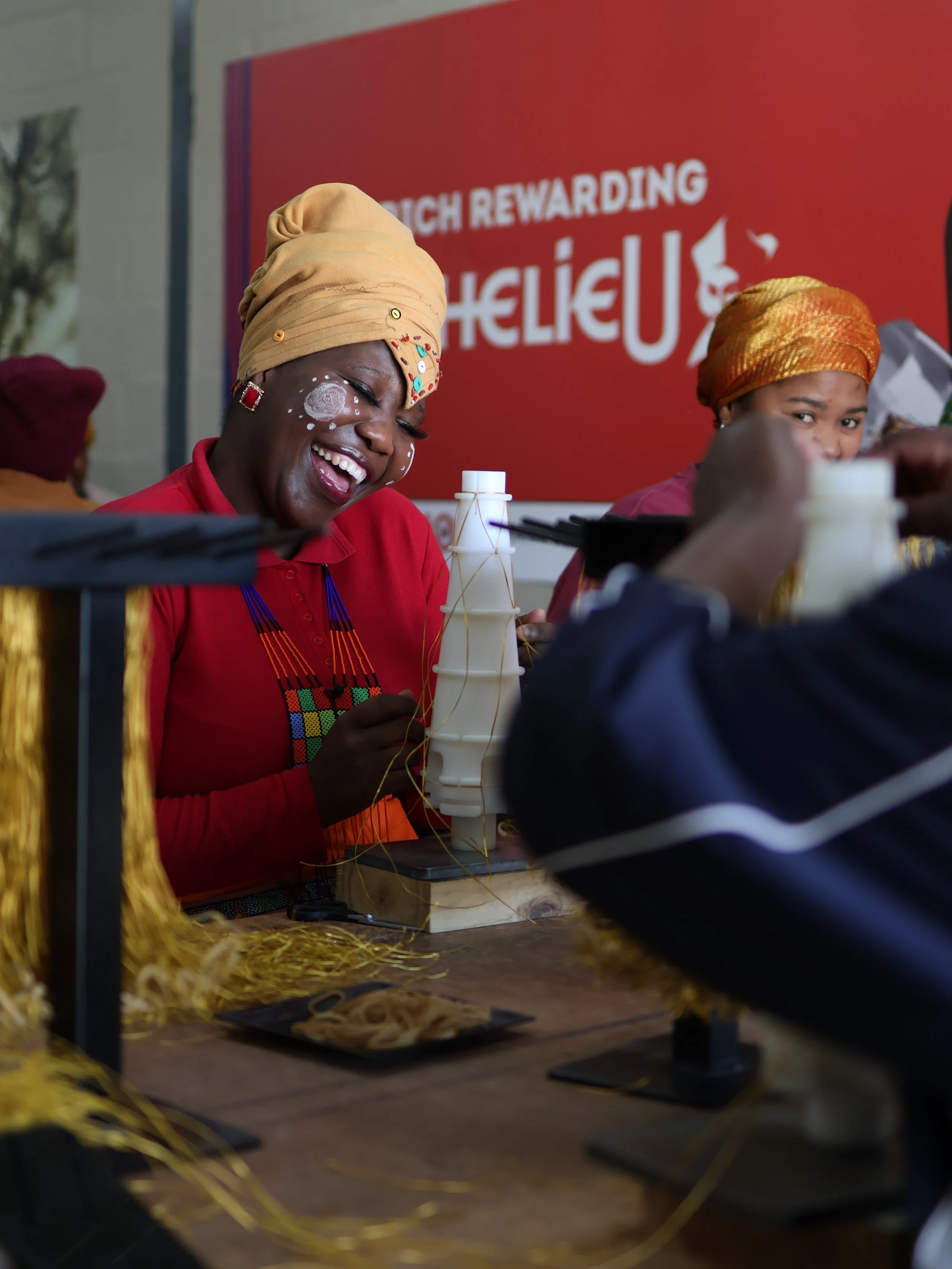 At Handwork Hub, every new employee works alongside an experienced woman to encourage skills transfer and mentoring. Zodwa also fosters relationships between generations — ensuring that while technical skills are passed on, so too is the wisdom of the older women, and the fresh perspectives of the younger ones. Both grow in the process.